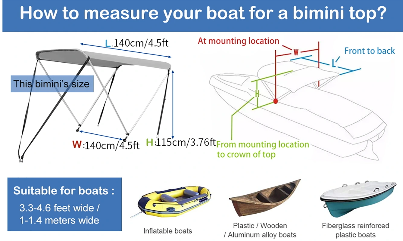 Tendë e bërë nga pëlhurë oxford 210D, rezistente ndaj lagështirës, rezistente ndaj shiut. Materiali detar 210D Bimini top është një mbulesë diellore shumëfunksionale për detin, e cila mund t'i rezistojë nxehtësisë së diellit dhe t'ju mbajë ju dhe familjen tuaj në mënyrë që të mund të shijoni një eksperiencë të rehatshme dhe të lirë në det.