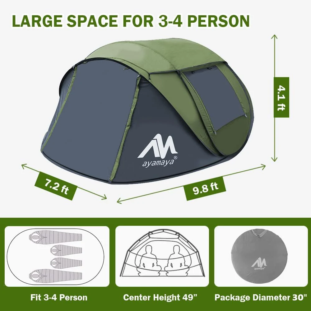 Tendë automatike e shpejtë e kampeve të hapura, 4 persona që shfaqen çadra për kampe të papërshkueshëm nga uji çadrat e çastit të çastit me dritat e dritës dhe shiun e lëvizshëm, të azhurnuara me madhësi të madhe me 2 dyer -automatike të lehta të plazhit me shufra me shufra me shufra