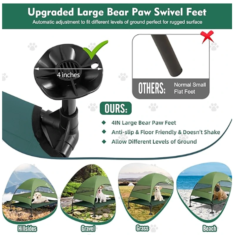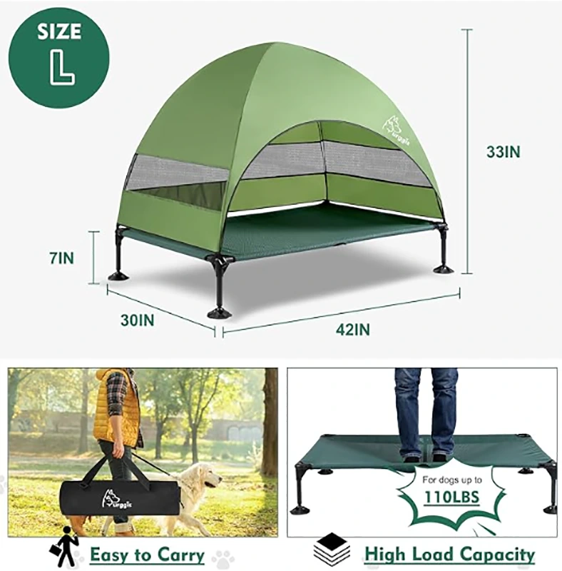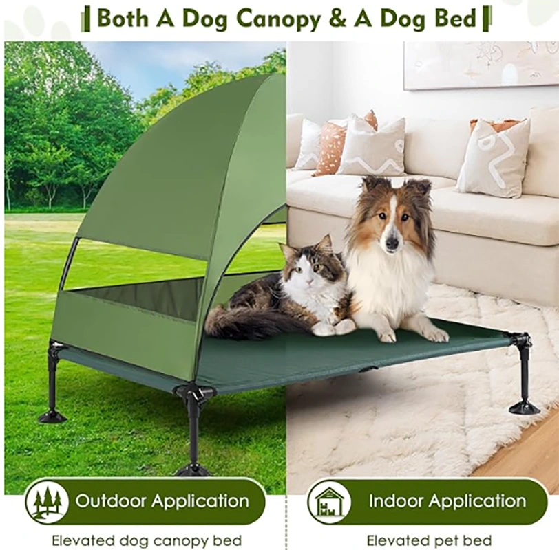 Shtrat Cat Dog me tendë, Shtretër Dog i përmirësuar i ngritur me tendë, Shtrat portativ i ngritur për qen qensh me këmbë të qëndrueshme kundër rrëshqitjes, Shtretër qensh me hije më të gjerë për kampe për qentë e mëdhenj, përdorim të brendshëm dhe të jashtëm.