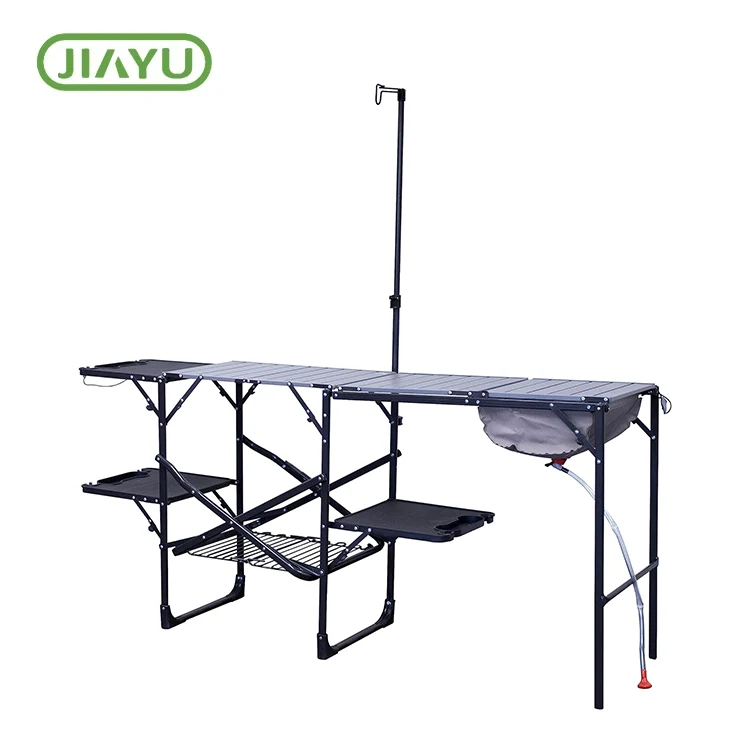 Tabela e portabël e kampingut të aluminit të palosur. Transportoni me lehtësi tryezën me dorezën e mbartjes së integruar.Zhejiang Jiayu Produkte Outdoor Co, Ltd, përdorin me siguri një sobë kampi në tabletop falë një dizajni të fortë, rezistent ndaj nxehtësisë. Përdorimet popullore përfshijnë stacionin e përgatitjes së bishtajave, kuzhinën në kampim, tavolinën e piknikëve dhe vendin e pastrimit-kjo tryezë është e përkryer për çdo rast me shumë përdorime.