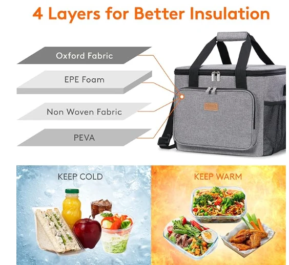 Kapacitet i madh: Dimensionet - 13.8 "(35cm) × 11" (28cm) × 11 "(28cm). Kapaciteti maksimal i kutisë së drekës për të rriturit është 24L, dhe është mjaft i gjerë për të ruajtur 40 kanaçe të koksit (330ml), ose dreka juaj si sanduiçe, sallatë, snacks, pije dhe fruta dhe kështu që është i përshtatshëm për zyra, për punë, për punë, PICNIC, PICNIC, PICNIC, PICNIC, PICNIC,.