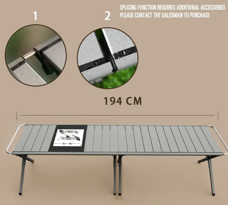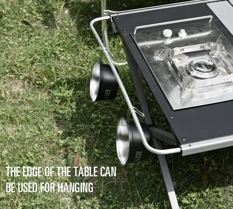 Tabela IGT e palosshme multifunksionale e lehtë, sipas nevojave tuaja. E përkryer për kampe, Barbecues, gatim në natyrë, dhe më shumë. Ana e tryezës mund të përdoret për të varur enët dhe veglat