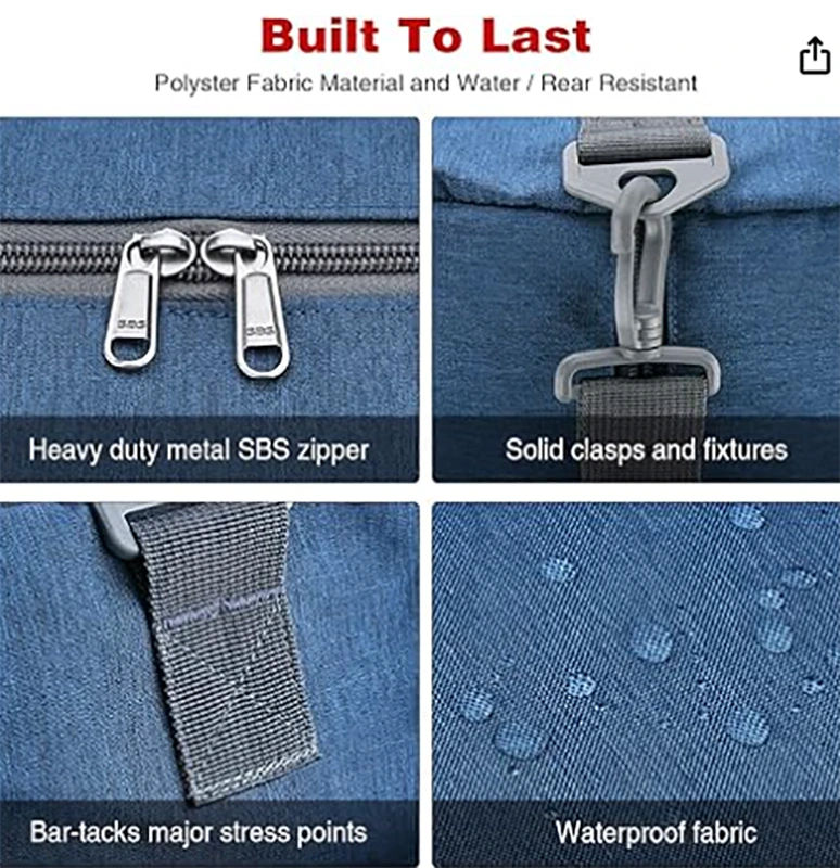 shtrihet në 26.3 x 13.7 x 12.2 inç me kapacitet 65 Litra dhe 1.74 paund. Madhësia e palosur: 10,6 x 9,4 x 3,9 inç, e lehtë për t'u ruajtur. Kjo çantë kapëse ka një ndarje kryesore të gjerë dhe 6 xhepa të veçantë. Mbani gjërat tuaja të organizuara mirë.
