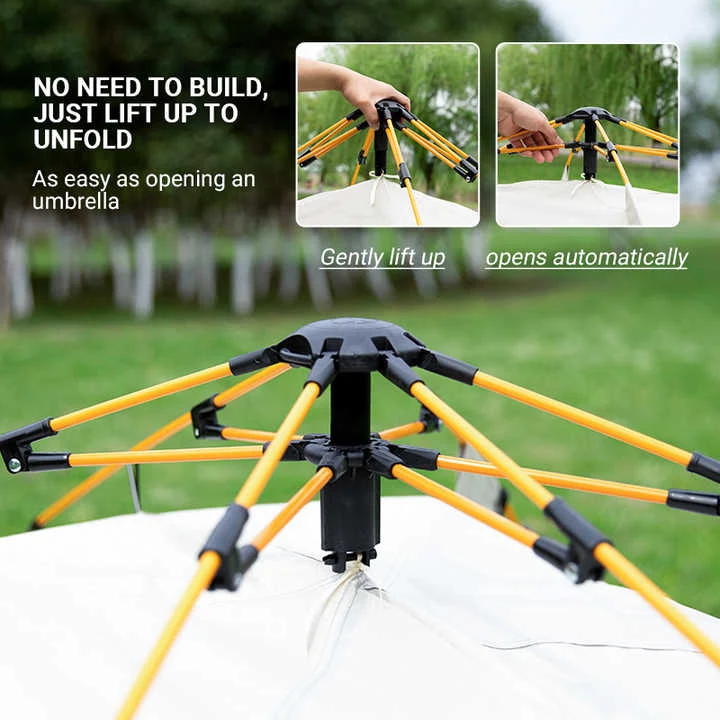 Tendat automatike të kanavacës në natyrë. Me udhëzime të qarta kristal dhe një dizajn praktikisht duke u bërë vetë, ju do të shijoni kakao të nxehtë në ambientet e jashtme në asnjë kohë. Konsideroni na shoqëruesin tuaj të kampingut - ne kemi marrë shpinën tuaj!