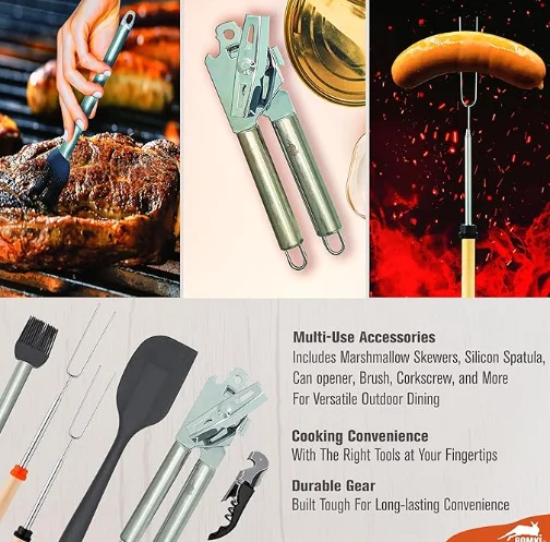 Baganta për ruajtjen e gatimit në kampe në natyrë. Kënaqësia juaj është përparësia jonë kryesore. Ne kemi hartuar në mënyrë të përpiktë mjetet tona të kampeve dhe aksesorët për të qenë të fortë dhe të besueshëm, duke eleminuar shqetësimet në lidhje me mjetet e përkulura, të thyera ose të ndryshkura.Zhejiang Jiayu Produkte Outdoor Co, Ltd Pockets individuale për të mbrojtur esensils tuaj të kuzhinës në kampim nga gërvishtjet gjatë udhëtimit. Pavarësisht nëse jeni duke u përkulur, kamping, ose thjesht duke shijuar ambientet e shkëlqyera të jashtme, ky grup i veglave të kampeve është një domosdoshmëri për nevojat tuaja të gatimit në natyrë.