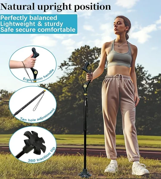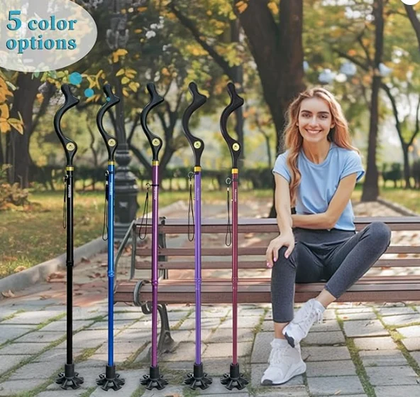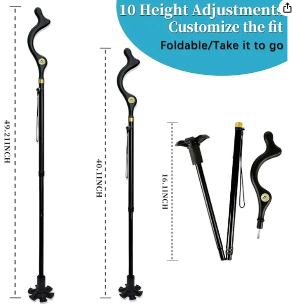 Pajisjet e ngjitjes në natyrë Polin Hiking, Cane Walkable Foldable për Burrat dhe Gratë Të moshuarit për ekuilibër, Cane të palosshme të vetë-qëndrueshme, lartësi të rregullueshme të rregullueshme anti-rrëshqitje aliazh të lehta në këmbë të rrëzueshme për ndihmën e lëvizjes së udhëtimit