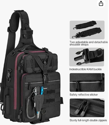 Rripat e shpatullave të shkëputura e bëjnë të lehtë përdorimin e kësaj qese si një çantë shpatash me hobe, shpinës, çantën, çantën e gjoksit, çantën e trajtimit të peshkimit ose çantën e udhëtimit. Me dy rripa shufra për të mbajtur shufrat tuaj, gjatësia kryesore e rripit mund të zgjatet deri në 51.2 '', ndërsa rripi i asociuar mund të shtrihet në 36.2 ''