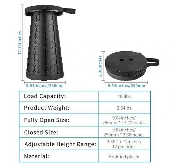 Karrige e fortë e lëvizshme, materiali plastik i modifikuar i jep forcës dhe ngurtësisë së jashtëzakonshme të stoolit. Forcimi i brinjëve të vendosura në pjesën e pasme të shkallës së peshkut Përforconi më tej stoolin.Retrakable Karrige palosshme Camping Camping Peshkimi Hiking 10 Ngjyra Udhëtimi Udhëtimi me lartësi të rregullueshme Karrige portative të stoolit për të rriturit
