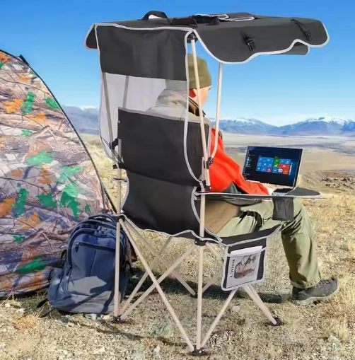 Udhëtoni karrige të palosshme për piknik, duke ofruar rehati të jashtëzakonshme për relaksimin tuaj në natyrë; Ajo përmban një xhep anësor për ruajtjen e telefonit tuaj celular, rrezet e diellit dhe disa sende të vogla